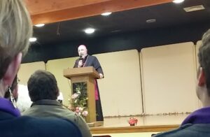Accompagnés de leur parrain/marraine, ils sont ensuite allés se présenter personnellement au Père évêque qui leur a remis une étole de couleur violette, en ce 1er dimanche de carême.