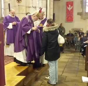 Accompagnés de leur parrain/marraine, ils sont ensuite allés se présenter personnellement au Père évêque qui leur a remis une étole de couleur violette, en ce 1er dimanche de carême.