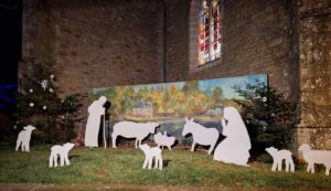 Les silhouettes ont une nouvelle fois bravé les intempéries. Inspiré par la crèche en extérieur de Ste Anne d’Auray, le spectacle est très pastoral, tout en sobriété. Quelques agneaux, l’âne et le boeuf entourent la scène de la Nativité. Une grande fresque représente les bords du Sal et le moulin de Kervilio. Elle forme le fond du décor. Illuminée en soirée, un esprit de paix et de sérénité en émane… et inspire les détenteurs de smartphones pour des clichés inspirés.