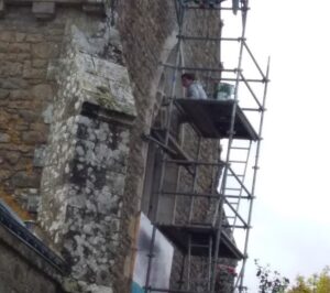 Les travaux de maçonnerie devraient se terminer fin juin. Il s’est révélé nécessaire de consolider tous les contours des fenêtres si bien que les travaux des sculpteurs de « La Pierre à l’oeuvre » se sont prolongés… Et le budget a doublé. Il atteint désormais 140 000 euros.